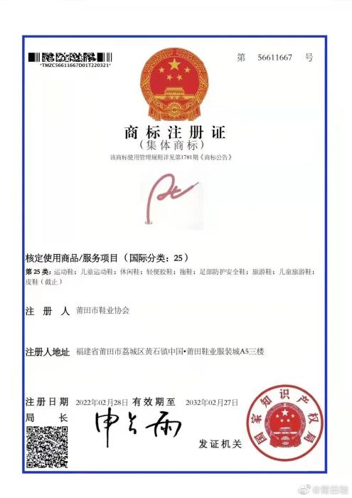 如今,“莆田鞋”集体商标已成功注册。记者注意到,莆田鞋官方微博还宣布,将于4月发布“莆田鞋”原创新品。