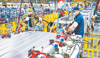 江西省赣州经开区金融部门推动产融对接常态化,帮助企业解决资金需求。图为日前在位于赣州经开区的山东凯马汽车制造有限公司赣州分公司生产车间里,工人正忙着加工新能源商用车的车厢架。 |