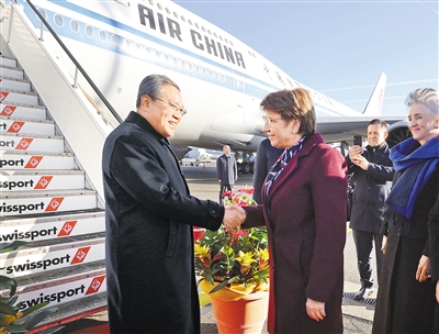 中国驻瑞士大使王世廷、常驻联合国日内瓦办事处和瑞士其他国际组织代表陈旭等也到机场迎接。