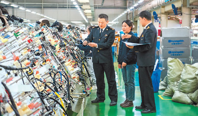 安徽省淮北市海关部门通过构建“加工贸易手册辅助监管系统”、强化保税料件核查等举措,提高加工贸易保税业务的规范化操作和标准化管理水平。图为淮北海关关员在当地一家企业开展保税料件核查。 |