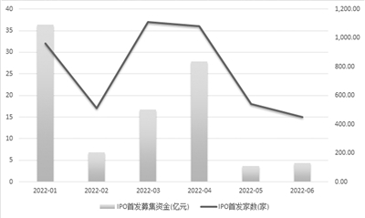 整体来看,6月IPO发行仍相对冷清。而与去年同期相比,2022年以来IPO数量的增速有所放缓,受到部分超大体量募资的上市公司影响,2022年以来IPO首发募集资金仍保持同比增长态势。
