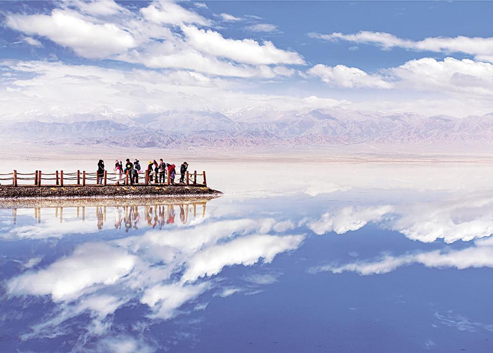 湖面如镜的茶卡盐湖,纯净得如同一片梦境。曾经的“盐池”,如今已发展成为青海省生态旅游的一张“金名片”。“水映天、天接地,人在湖中走,宛如画中游”,是对茶卡盐湖环境的形象描述。