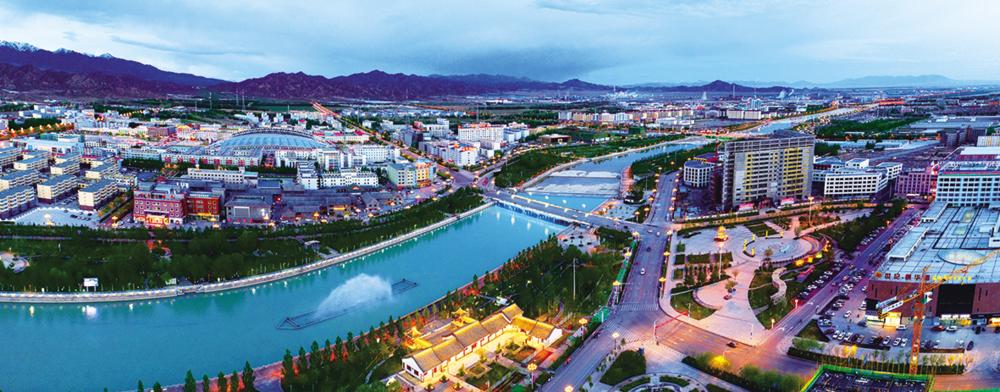 风景怡人的巴音河畔游人如织、风光迷人,每当夜晚,沿着堤岸边的石栏漫步,灯光绚丽,树影婆娑,颇具梦幻色彩,已成为全市生态文明、全民共享、共奔小康的一张靓丽名片!