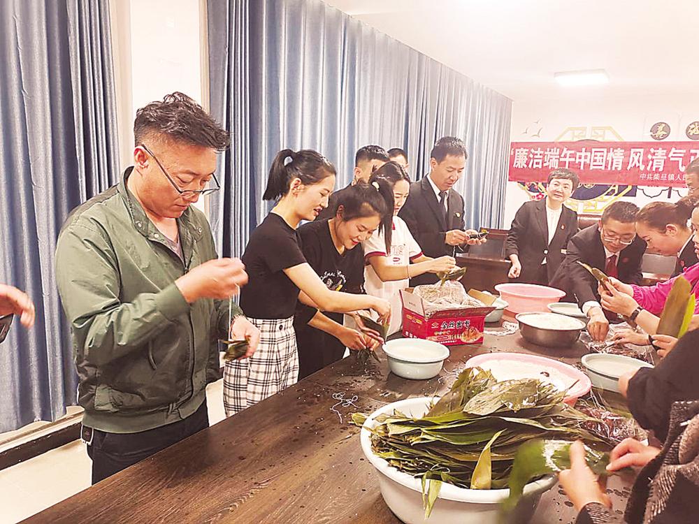 端午节当天,人民路社区组织群众包粽子。