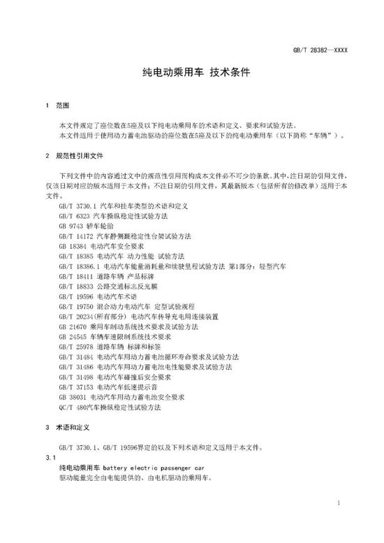 以下为《纯电动乘用车技术条件(征求意见稿)》全文: